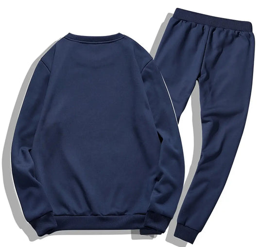 Men's Self Pattern Slim Fit Navy Blue Fleece Tracksuit